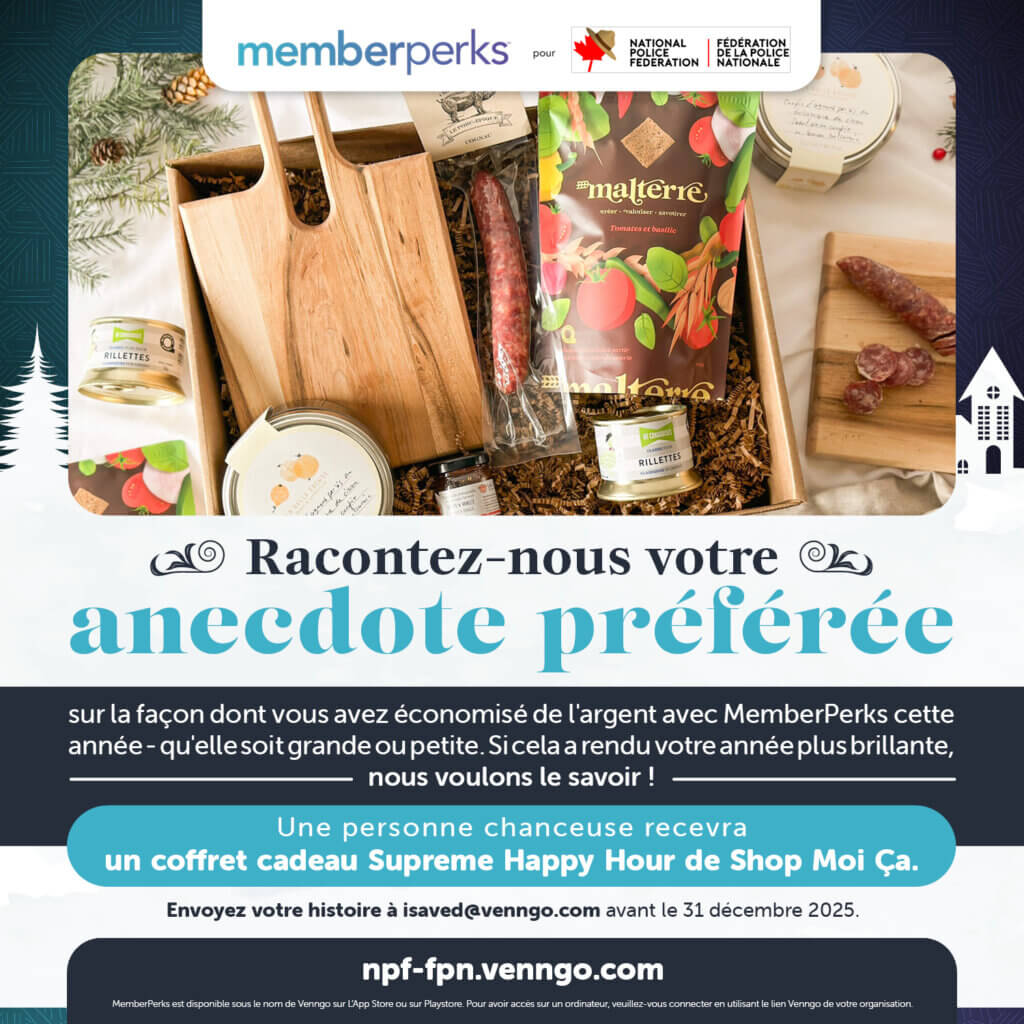 Un chanceux raconteur d’histoire gagnera un coffret cadeau MemberPerks ce mois-ci, juste à temps pour les fêtes. Soumettez votre histoire d’épargne préférée à [email protected] avant le 31 décembre pour courir la chance de gagner!